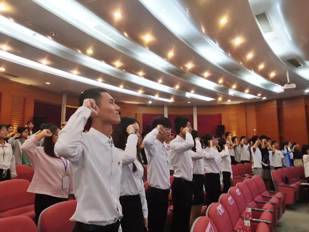 活动伴随着激昂的音乐正式开始,全体人员高声歌唱中华人民共和国国歌。紧接着,李静文师姐带我们重温了入团誓词,全体团干右手握拳,目光坚定,铿锵有力地喊出了入团誓词。