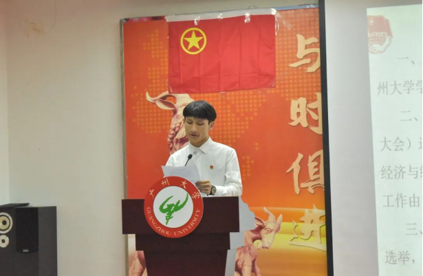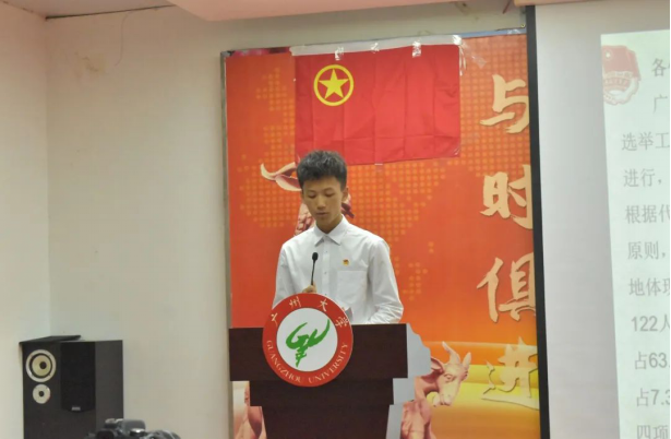 本次大会正式会议在庄严肃穆的国歌声中拉开帷幕。校学生会主席团成员古镇添代表广州大学学生会对本次双代会的召开表达了最诚挚的祝贺,并提出三点建议:一是坚持围绕学校人才培养目标展开工作,切实发挥学生会对青年学生的思想引领作用;二是紧密围绕同学实际需要,提高服务水平和服务能力,切实服务同学成长成才、坚持关注关心同学、发挥好桥梁和纽带作用;三是积极落实学生会改革方案、促进学生会新发展。
