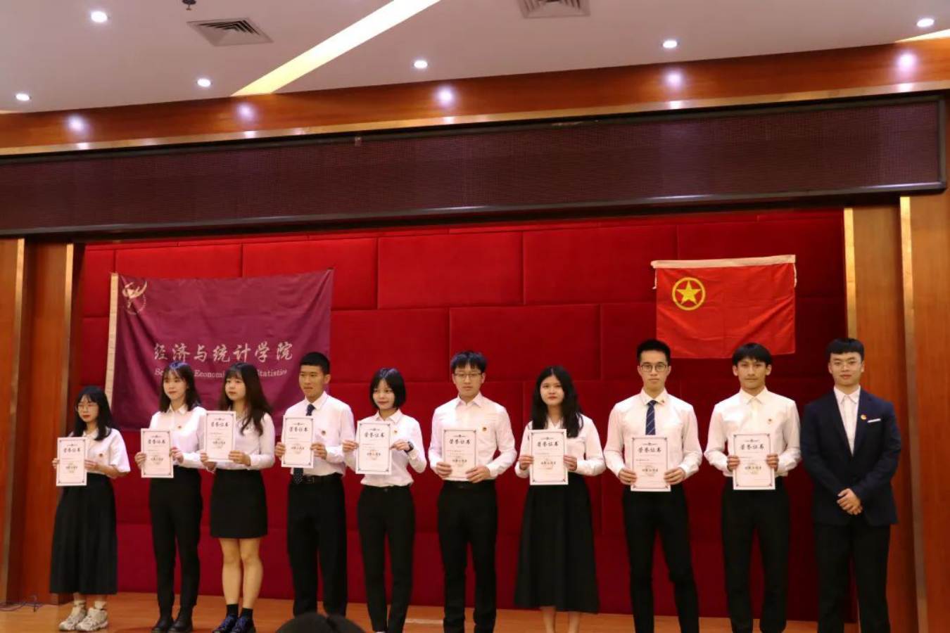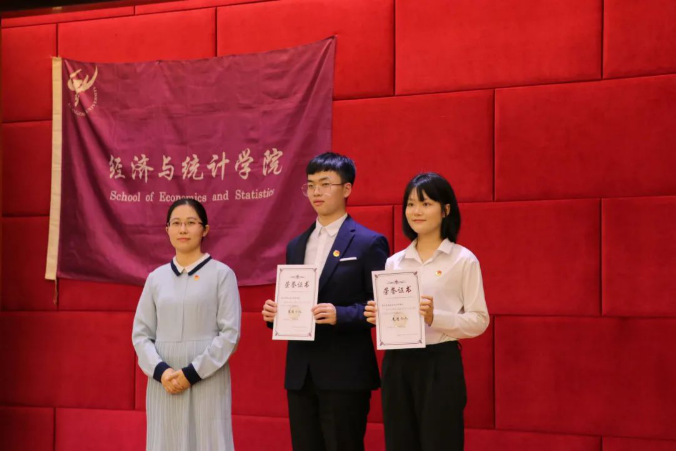 在经统团委、学生会这个温暖大家庭中,部长们犹如大家长带领部委们克服工作上的困难并且出色地完成各项任务。李静文师姐为第七届团委、学生会四位优秀部长颁发奖状证书。而后,香泽锋师兄为第七届团委、学生会九位优秀成员颁发“优秀工作者”奖状证书。