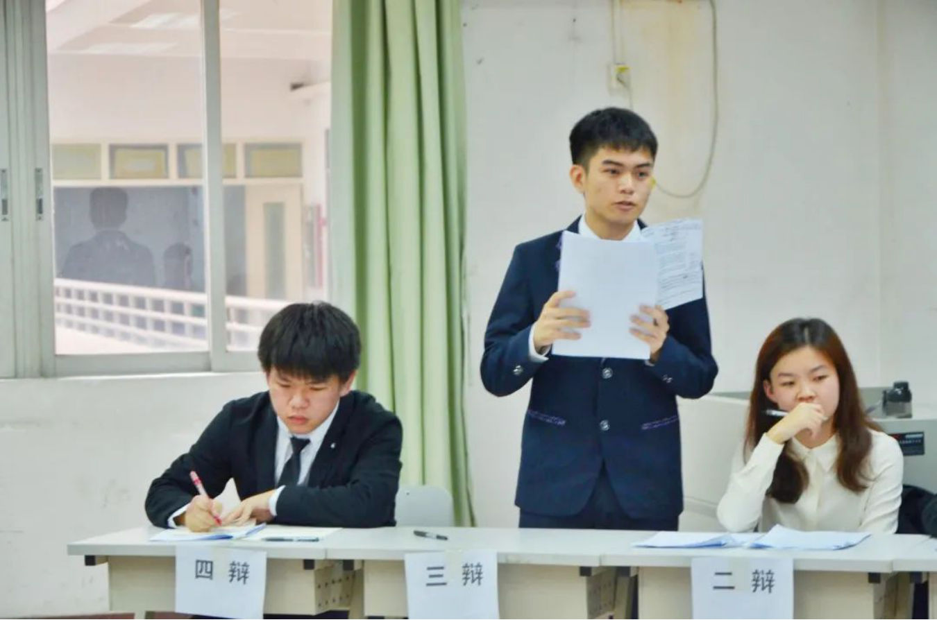 在严肃紧张的氛围中,比赛拉开了序幕。主席向大家宣读了本次比赛规则,并介绍了到场嘉宾和评委。紧接着,在双方队伍的辩手各自进行自我介绍后,决赛正式开始。