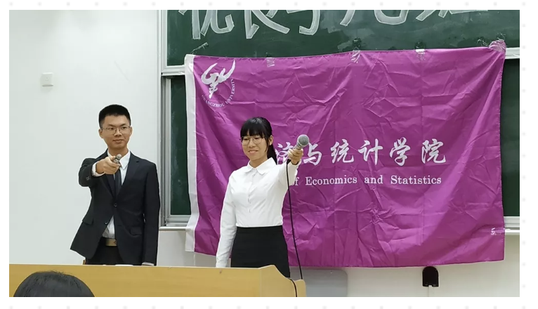 在主持人简洁地介绍完展示顺序和评选规则后,入选的12个班级依次上台进行展示。此次评选把班级分成两批,第一批班级有国贸172、会计172、金融171、国贸173、会计174、会计162,第二批班级有会计164、金融172、国贸174、会计171、统计171、会计173。