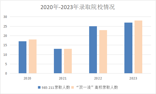 2023届本科毕业生共416人,截止到目前有97名优秀学子成功考取研究生,总体升学率为23.31%。2020年至2023年,时时彩开奖网